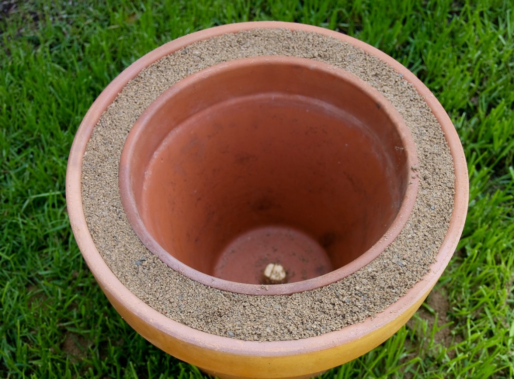 Fill the space between the pots with sand.